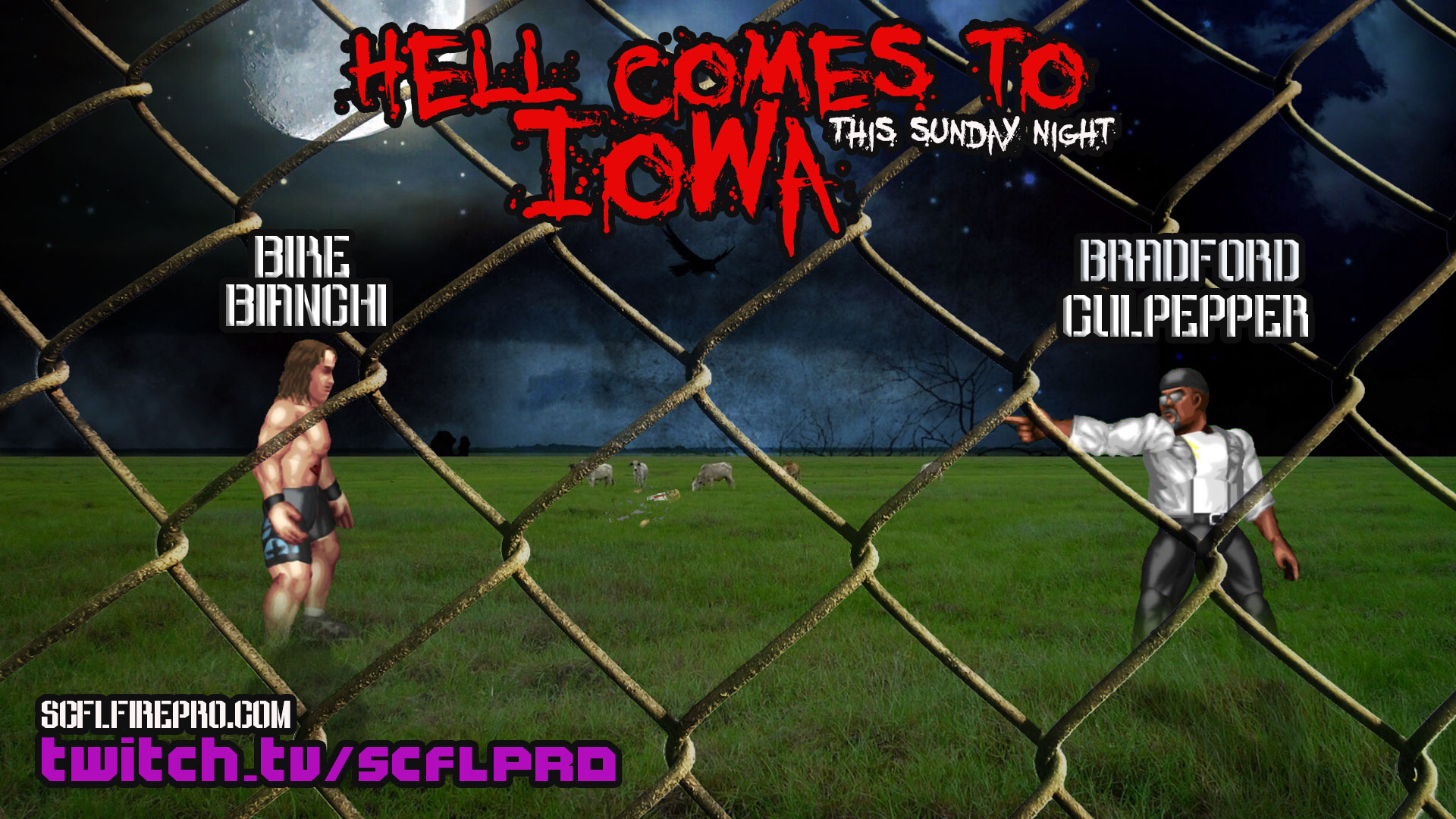 However you choose to define hell remains up to you. Is it an abstract concept, a state of mind or an actual, physical place where your very essence is transported to for your sins in life. For some, well, Belliribbuon, Iowa is exactly that place. No, you can’t find Beliribbon, Iowa on a map, nor does it have a static spelling. So what exactly is happening with SCFL Pro this week? Hell comes to Iowa, hell comes for Bike Bianchi and Bradford Culpepper in their storied feud.