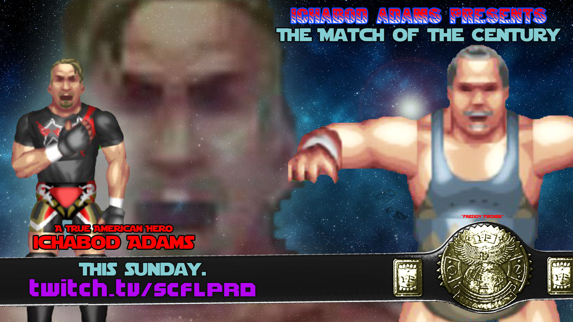 So this week, somehow, some way, Ichabod Adams presents Ichabod vs. “Freddy Fischer” for the SCFL Pro World Championship.