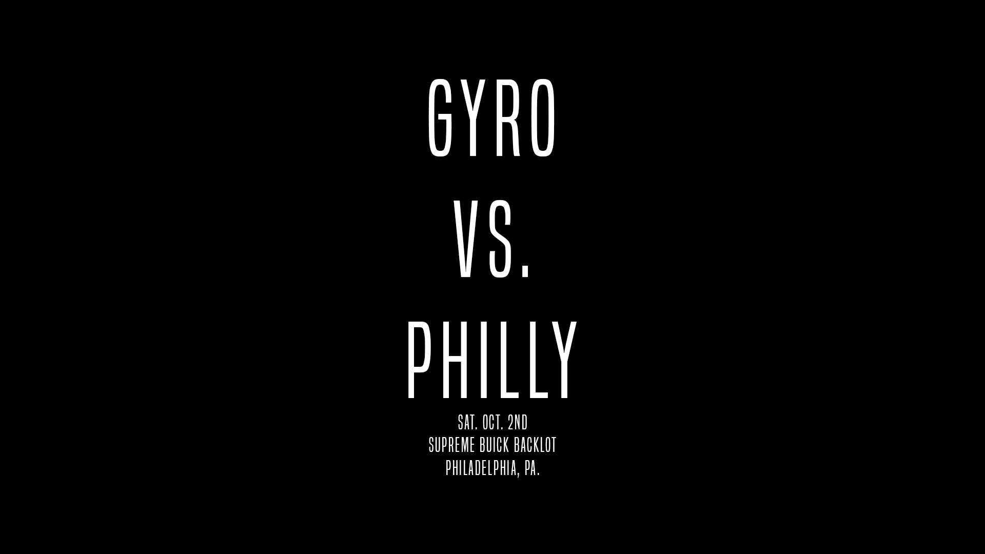 Join us at 8pm Eastern time on Saturday, October 2nd for Philly vs. Gyro.