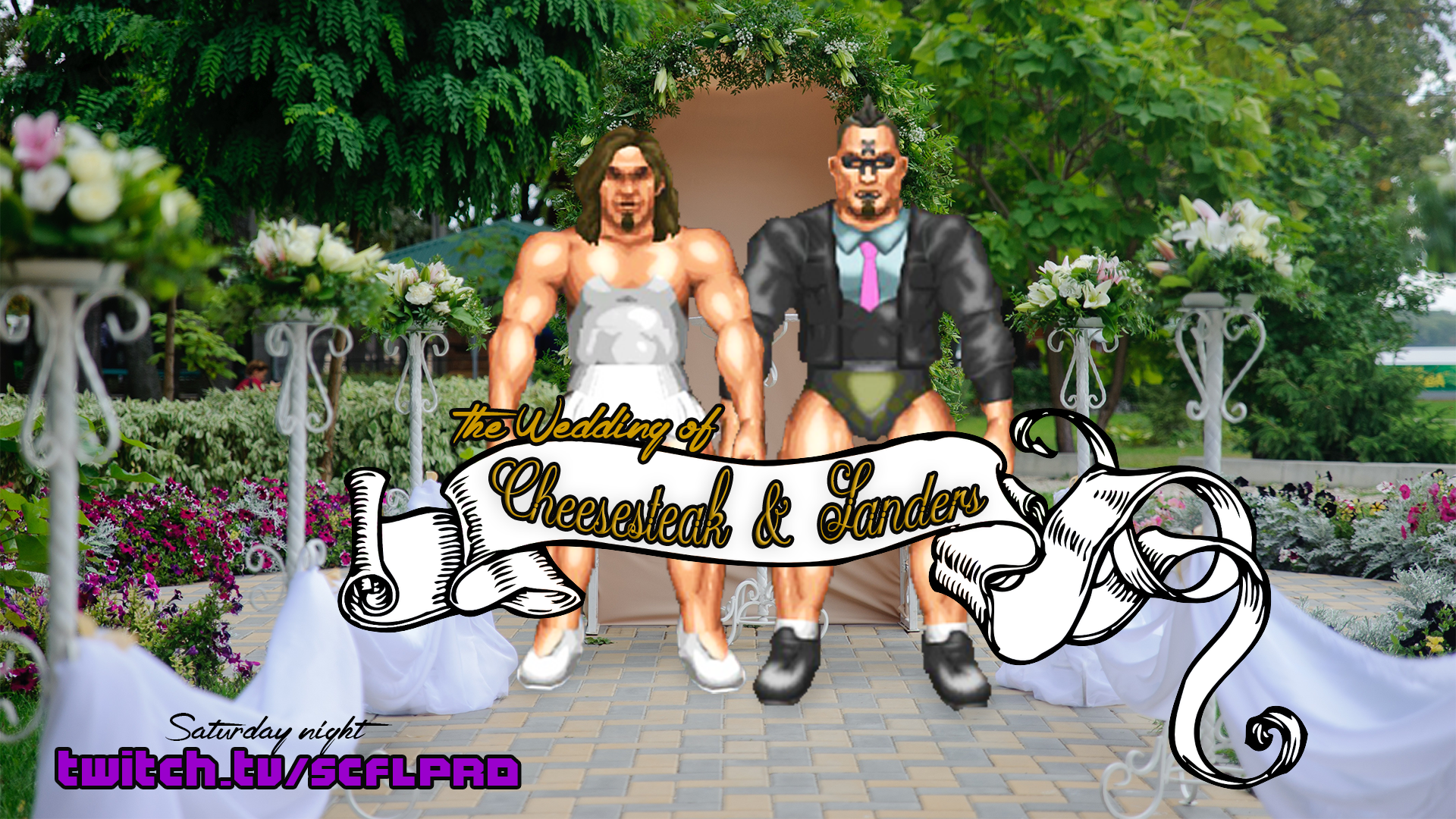 The wedding of the century is finally upon us as the Shadow Realm hosts the beautiful marriage of SANDERS Suzuki and Cheeseteak Supreme. Their story has blossomed over the years. From working at Supreme Family Buick, to joining hands and stepping into a malevolent and damp alternate plane of existence, the one constant through death and BBQs have been their love.