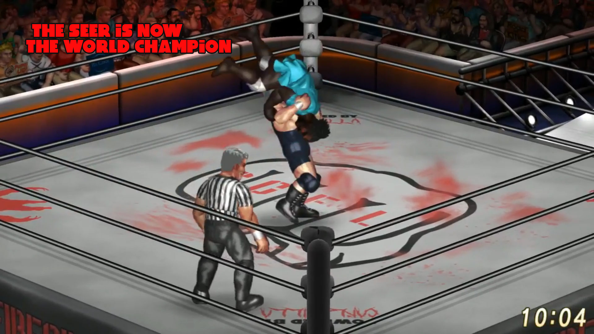 Freddy Fischer (DISGRACED) was there with the full support of the Shadow Realm, with Offers Thompson, Charles Dubois and Fragrant Tanaka all breathing in unison while they watched the action in the ring unfold. Miles Manhoef was bloodied up early on in the match and it was looking not just bleak, but dire for the fan-favorite. What makes it truly remarkable is that we have to believe that Miles saw this coming. His role as the Seer means that, well, he can see everything. He knew that he’d put his body on the line, face insurmountable odds, yet he did it anyway. Did we branch off into a new timeline? Did Miles alter our current timeline by seeing the future and changing it this week? That remains to be seen, but what we do know is that he fought back and a Knee Twister Press to the back of Freddy Fischer, followed by a three count left us stunned, breathless and emotionally drained: Miles Manhoef was the new world champion.