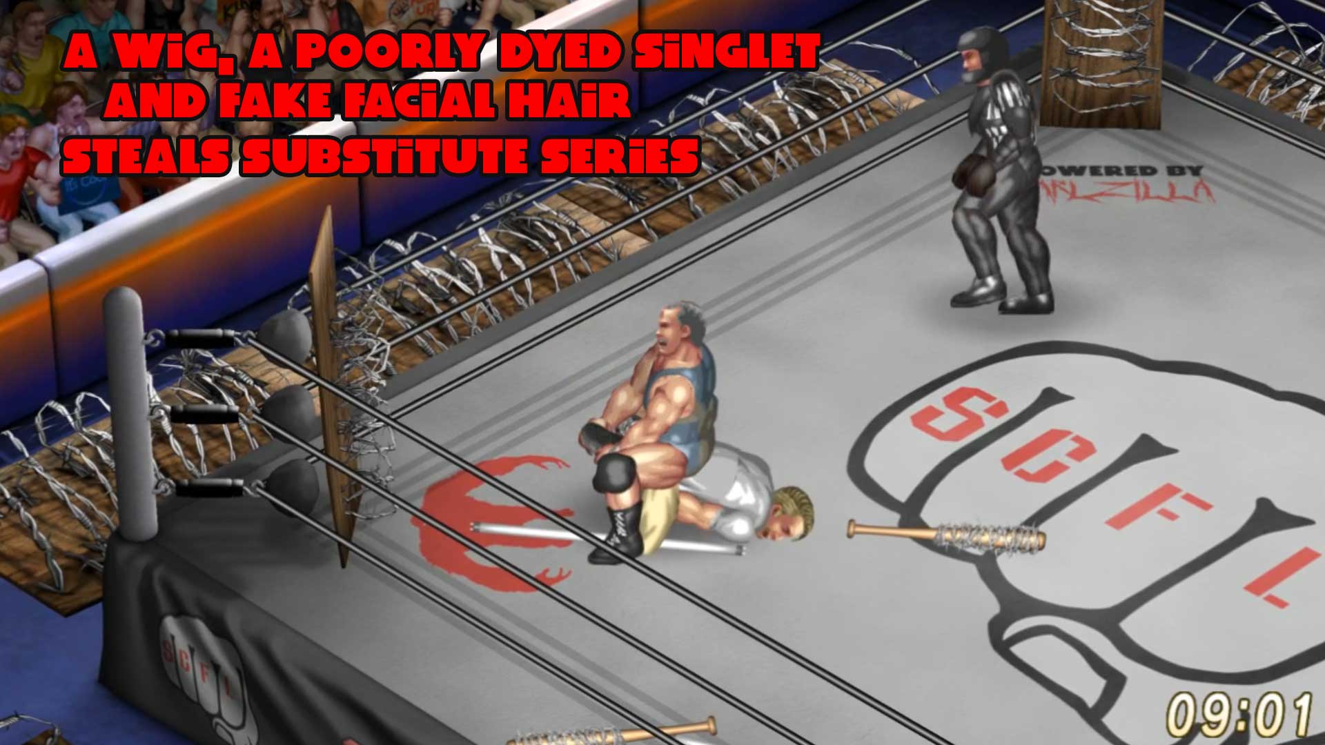 Three new subs made their debuts in Drea Montebank, Samantha Sugar and Patty Acosta. The devious Ichabod Adams scored victories over Mountebank and Acosta to make his way to the finals, while Let Liu defeated Federal Bell, then Samantha Sugar to make his way to the finals. To say that it seemed impossible for Liu to pull this off was an understatement. Adams, known for not only being an awful human being but also a sound competitor, was denied any convenience in his match. He didn’t control the referee, his friends weren’t at ringside and the Fixers installed deathmatch equipment to give an edge to Liu.